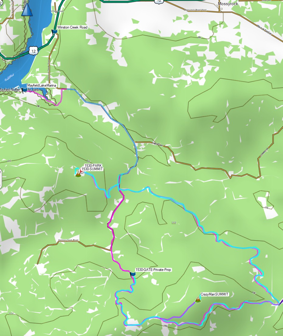 I attempted to go down the back side from Crazy Man to activate 1570 (W7W/PL-152) but there is a gate blocking access due to private land. I marked that in my route map below. So drive down the way you came and then 1570 can easily be done as a drive up on the way out, off of Salmon Creek Road. See http://www.pnwsota.org/blog/k7agl/2025-june-30/1570-wa-june-2025 )