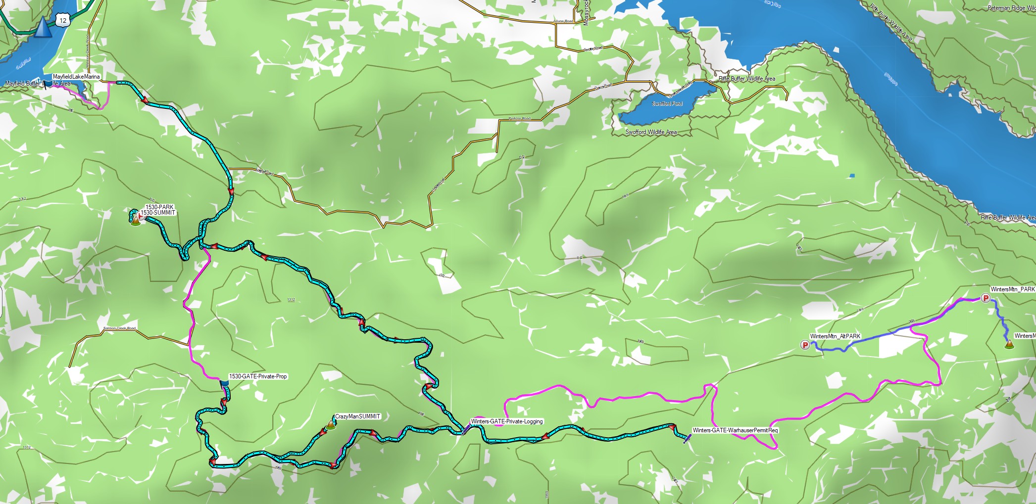 I attempted Winters Mountain on June 29th 2025 and ran into closed gates. There is an old trip report on Peakbagger for this summit but it looks like Weyerhaeuser has now closed access to recreational use permit holders. You can do Crazy Man Mountain and 1570 (W7W/PL-152) as easy drive ups from the Salmon Creek and "Camp Nine" roads. I posted trip reports for those to PNWSota.