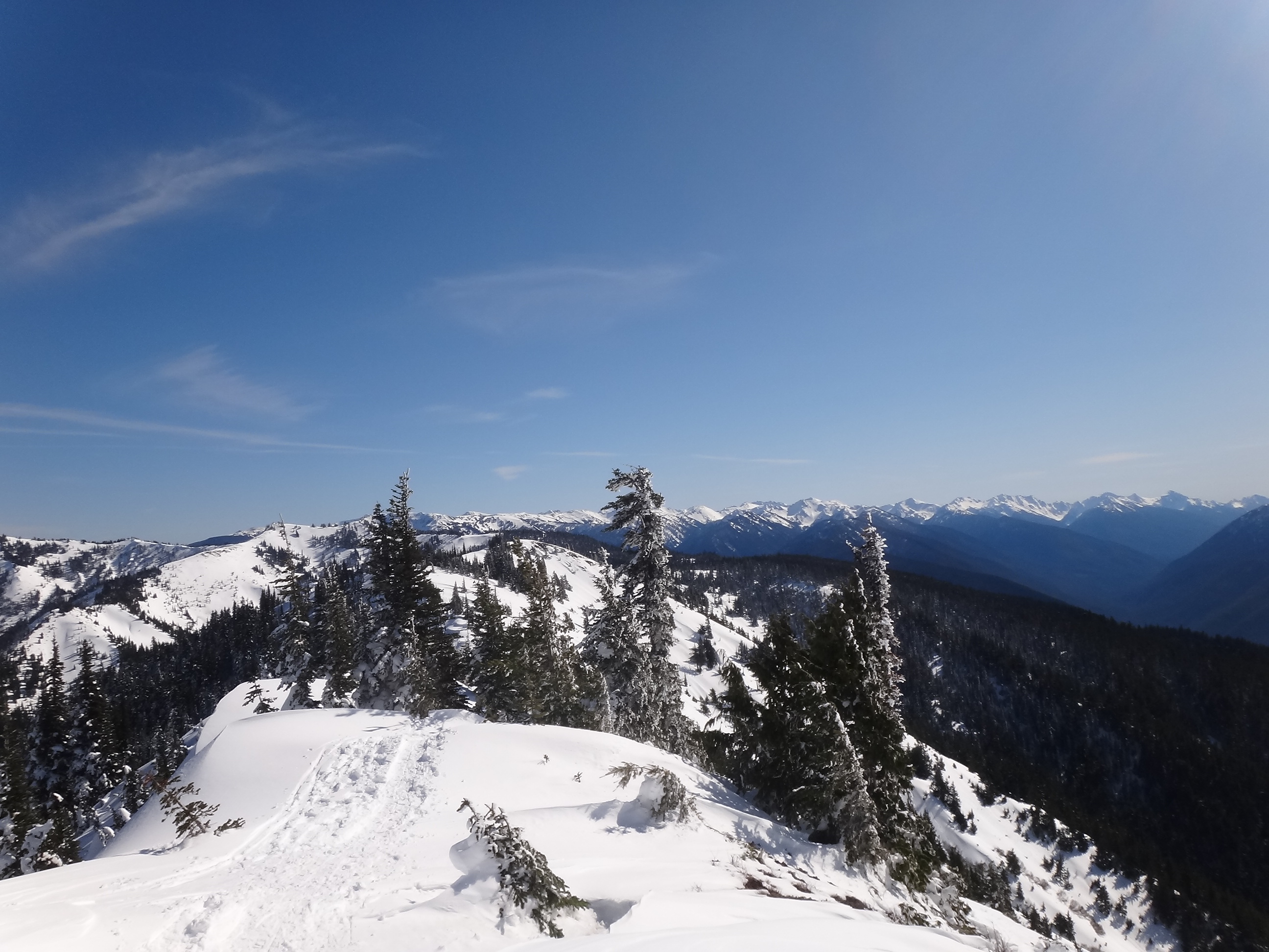 Hurricane Hill is the high point of Hurricane Ridge in the Olympic National Park. It's a fairly easy hike in the summer season, and quite a ways farther in the winter on snowshoes. The summer hike is about 3.0 miles round trip, while in winter it will be closer to 5.6 miles. Although the net elevation gain is about 500 feet, you'll be going up and down along the ridge for more elevation gain, especially in winter.
