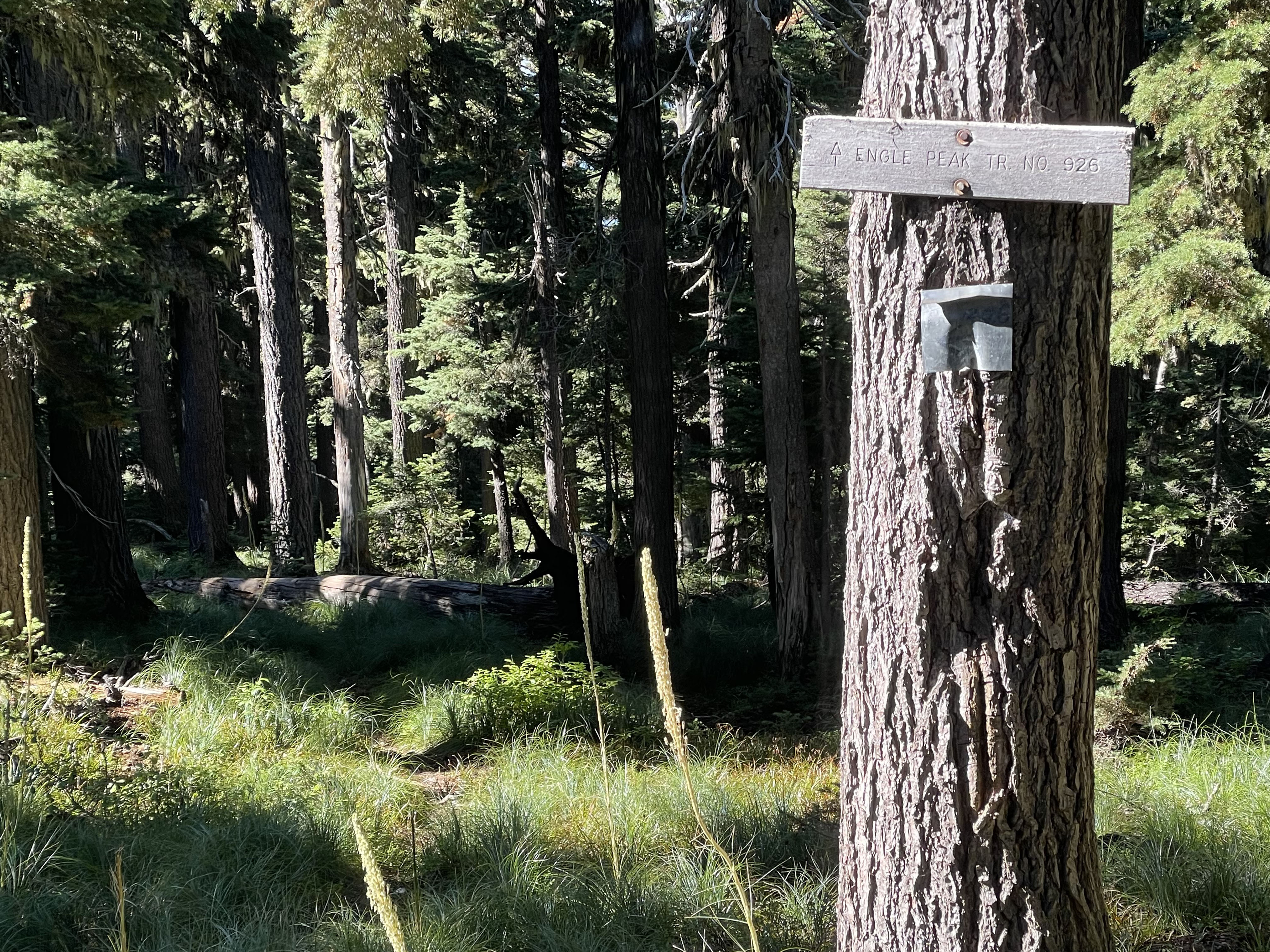 Be aware that returning from Engle Peak at approximately1.9 miles it’s easy to see a trail sign “Engle Peak Tr No 926”. Following that trail downhill leads into McKay Creek and does not return to the trailhead #932 described in this summit trip blog.