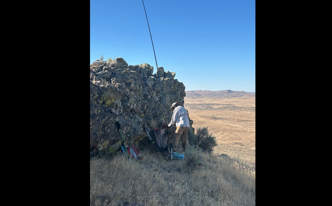 3914, SE-178 is a non-prominent prominence located near nothing, well between Vale Oregon and Lake Owyhee Reservoir. For a real 4x4 it’s a drive up, but the ruts became to deep for our Rav4 (eight inches of clearance.) The road we took was not on a map and the road were looking for that was on the map wasn’t discoverable by us on the ground. As you can see from the track attached to sotl.as there is almost no elevation gain. The summit is a long ridge in a bumpy landscape. We had difficulty figuring out which lump it was. The summit is entirely open. We dropped off the far side a bit to use a rock outcropping for shade and antenna support. No trees available. Trailhead (double track) is at 43.7478, -117.3127. From there it is 3 miles Rt and 350 feet of elevation gain.